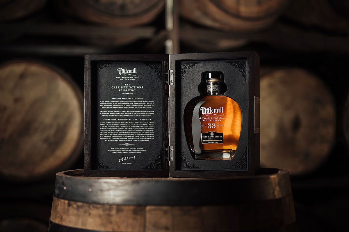 The Cask Reflections collection is a revival of the past like never before in the legacy of Littlemill. For the first time, a carefully selected series of cask finishes has been curated by Michael Henry, Littlemill’s last custodian, and applied to small numbers of casks from Littlemill's final years. Like the changing direction of light as it reflects through a prism, Littlemill's historic signature notes are combined with the finesse of new flavours. The result is something extraordinary – a reflection of the past recrafted by the present. An honouring of history yet embracement of innovation – casting a new reflection on the spirit of ambition upon which Littlemill was built.