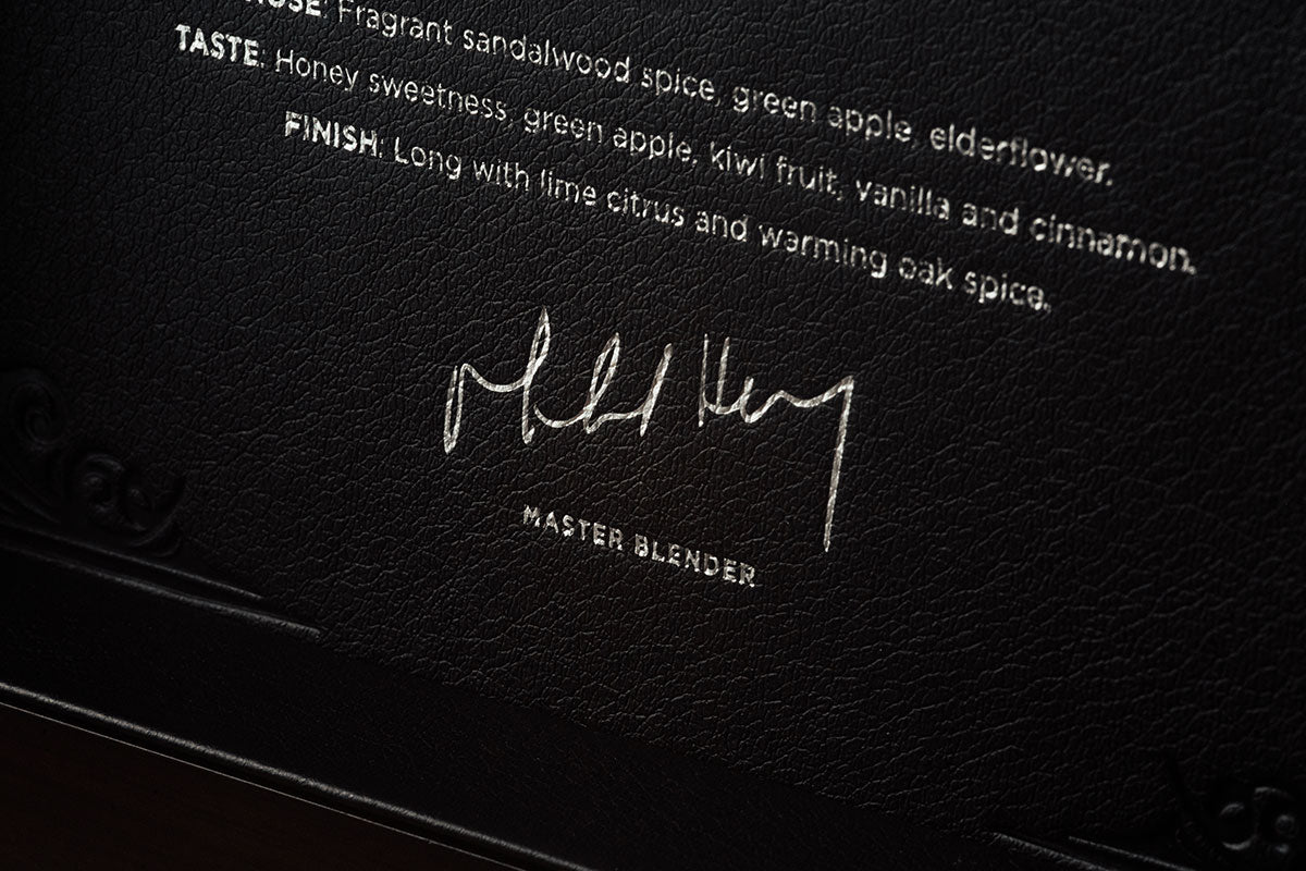 a reflection of the past, recrafted by the present. It honours the exceptional historic liquid preserved in our precious remaining casks, and it embraces unexpected techniques and untraditional finishes.”