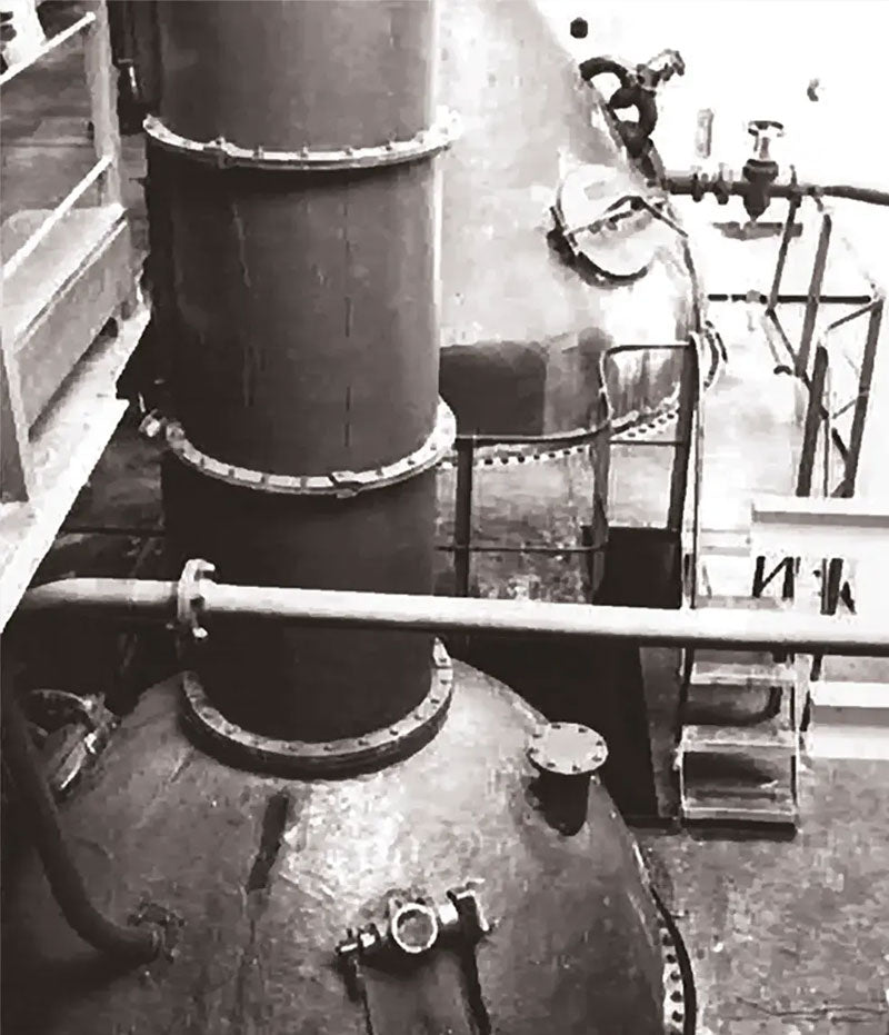 After one of its brief closures in 1929, Littlemill was bought and reopened by American entrepreneur and chemist Duncan Thomas in 1931. One of the forgotten innovators of Scotch whisky, it was Thomas who introduced a new design of Saladin box for malting with two ventilation towers and a single kiln, switched from the Lowland tradition of triple distillation to double distillation, and installed new hybrid stills with copper pot still bodies and rectifying columns instead of swan necks to have greater control over the distillation process and allow a number of different characters to be produced.